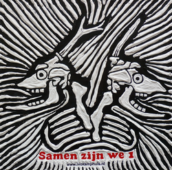 Het kunstwerk is een zwart/wit tekening uit de serie "Kruistocht der Dieren" van beeldend kunstenaar Ivo Kamphuis (1967). Hij is een fel tegenstander van de bio-industrie en laat dit zien in zijn werk.